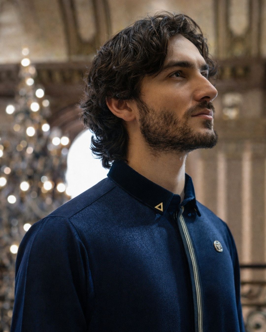 Lawung AAR2670 é um thobe Al Ameer em azul-navy texturado premium com brilho subtil, colarinho estruturado e detalhes metálicos para conforto e estilo sofisticado.