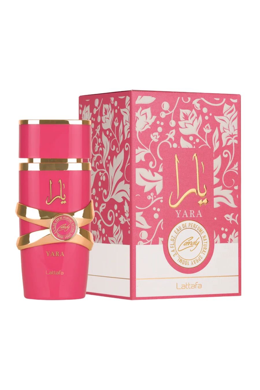 Lattafa Yara Candy é uma fragrância feminina que combina notas de groselha preta, tangerina verde, morango, gardênia, baunilha e âmbar, criando um aroma doce e sofisticado.