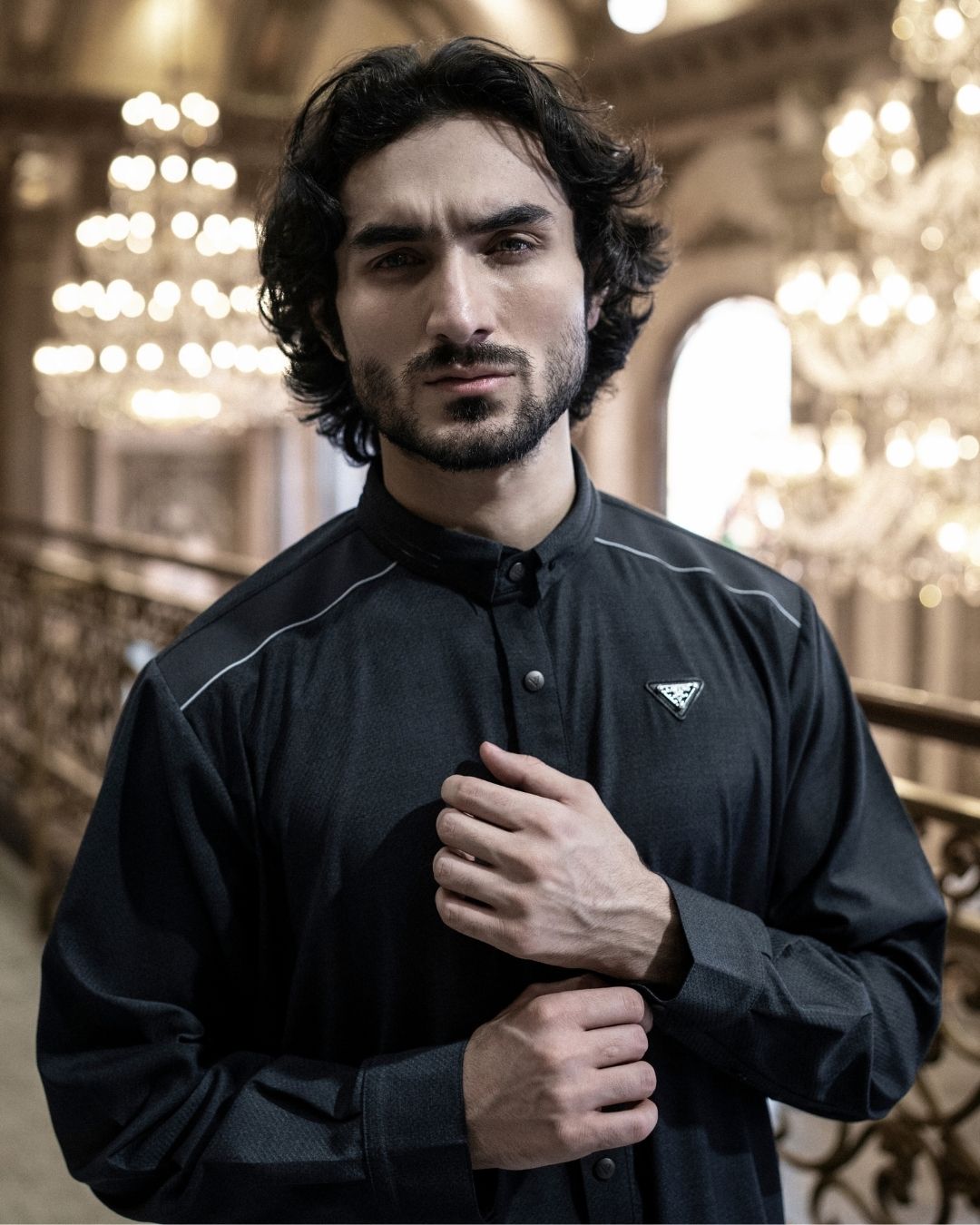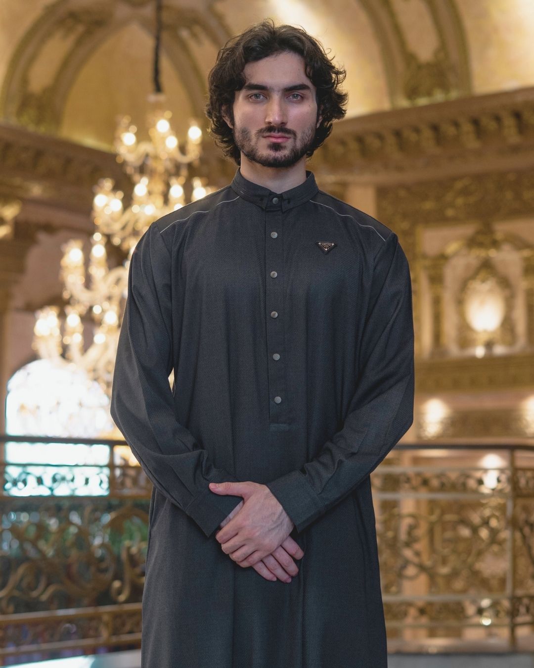 Lawung LWR2652 é um thobe masculino em tecido premium preto com corte descontraído e confortável que combina estilo tradicional com uso versátil diário e formal.